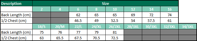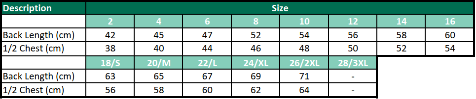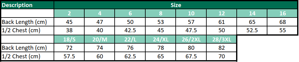 Back length – From top of the collar tag to bottom of garment
